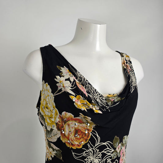 Vintage Jessica Black Floral Beaded Detail High Low Dress Size M