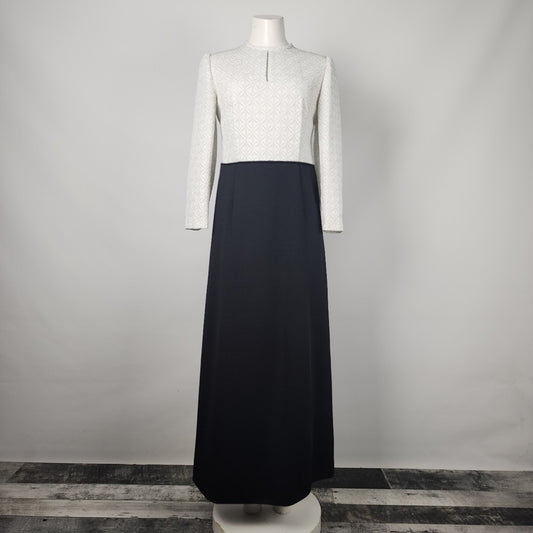 Vintage Metallic White & Black Long Sleeve Event Gown Size M