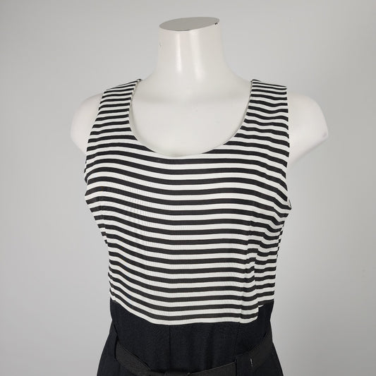 Vintage Black Striped Sleeveless Belted Jumpsuit Size M