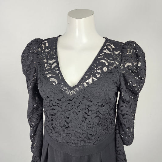 H&M Black Lace Puff Sleeve Jumpsuit Size M