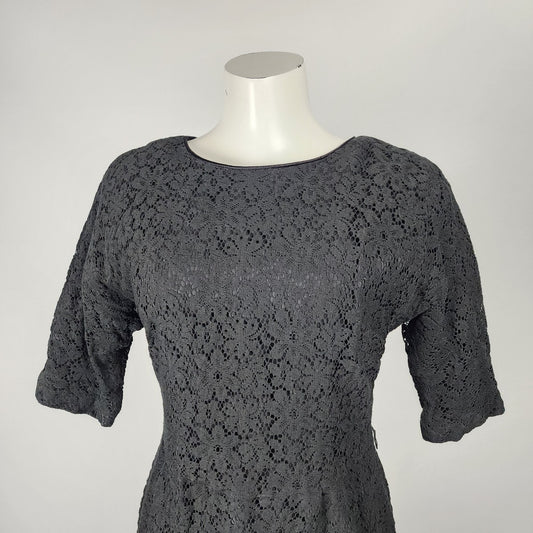 Vintage Wendy Lane Black Lace Long Sleeve Sheath Dress Size M
