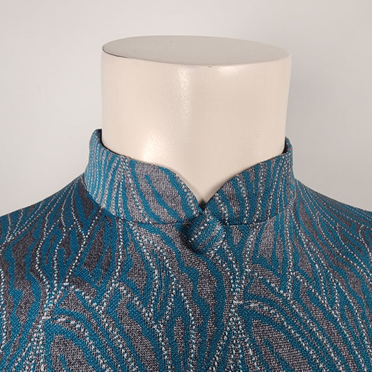Vintage 60s Blue & Grey High Neck Sheath Dress Size M/L