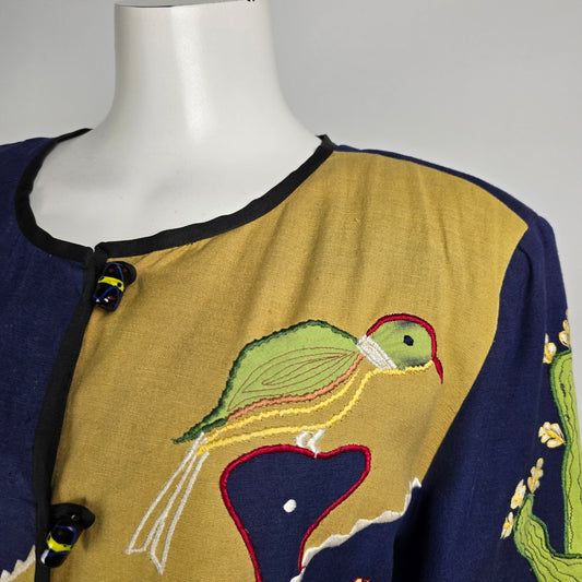 Vintage Allure Cactus Embroidered Glass Buttons Light Jacket Size M/L