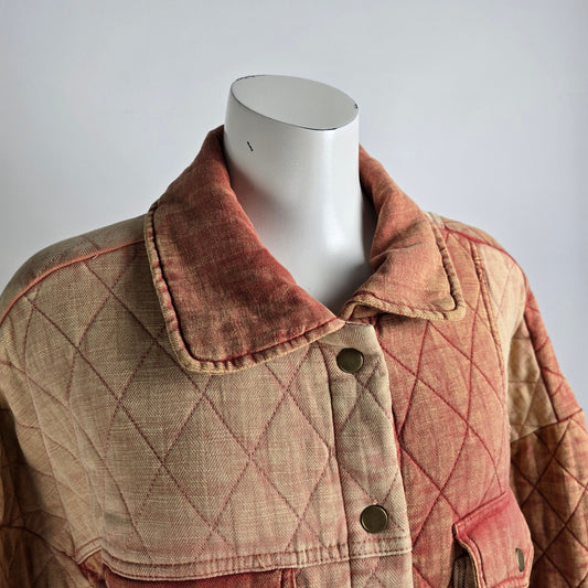 Oli & Hali Orange Cotton Linen Patchwork Shacket Jacket Size S/M