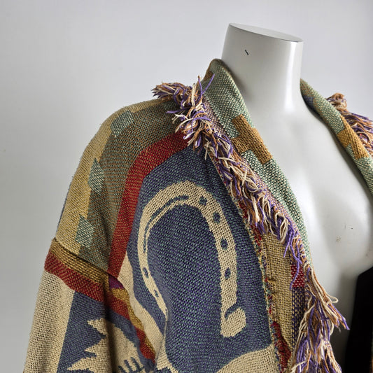 Vintage E. Claire Designs Austin Texas Cotton Fringe Jacket Size L/XL