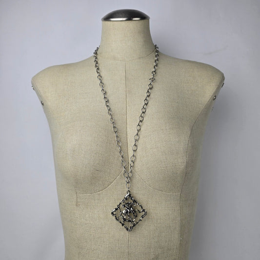 Vintage St. George & The Dragon Silver Pendant Necklace