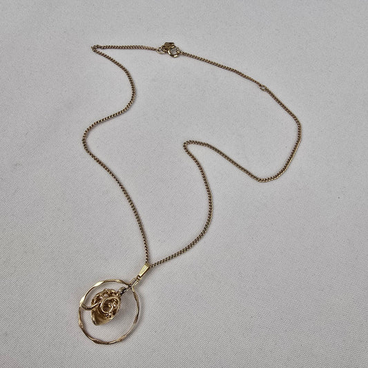 Vintage Gold Tone Knight on Horse Pendant Necklace