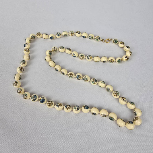 Vintage Creme Fused Beads Blue Flower Necklace