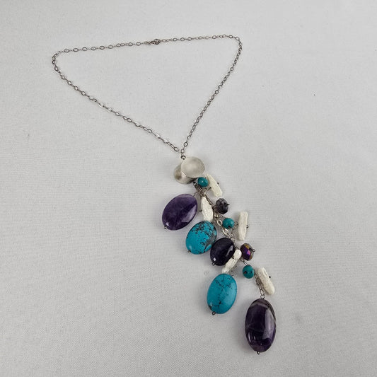 925 Sterling Silver Natural Stone Cluster Drop Necklace