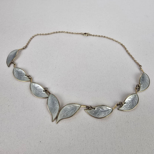 David Andersen Norway 925 Sterling Silver Gold Vermeil Enamel Leaf Necklace