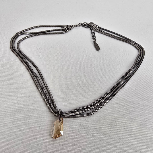 Lucas Lameth 925 Silver Titanium Coated Quartz Brown Metallic Necklace