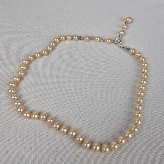 Vintage Faux Pearl Hand Knotted Glass Beaded Choker Necklace