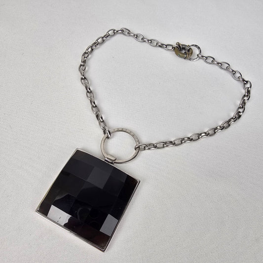 Dyrberg Kern Silver Black Square Stone Statement Necklace