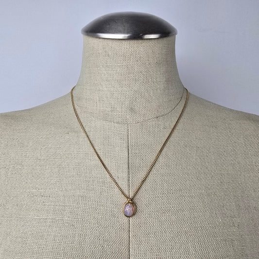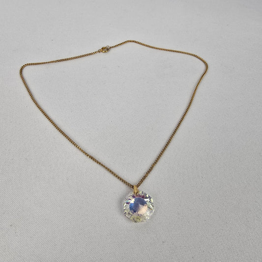 Vintage Gold Tone Faceted AB Glass Pendant Necklace