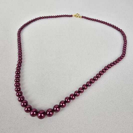Vintage Purple Glass Faux Pearl Hand Knotted Necklace