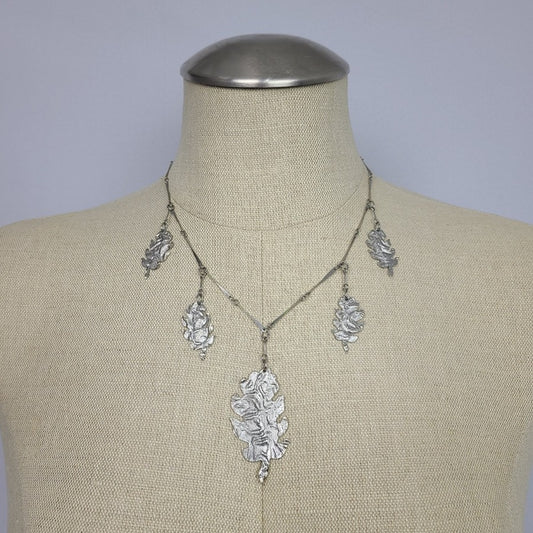 Vintage Hammered Leaf Pendant Charm Link Necklace