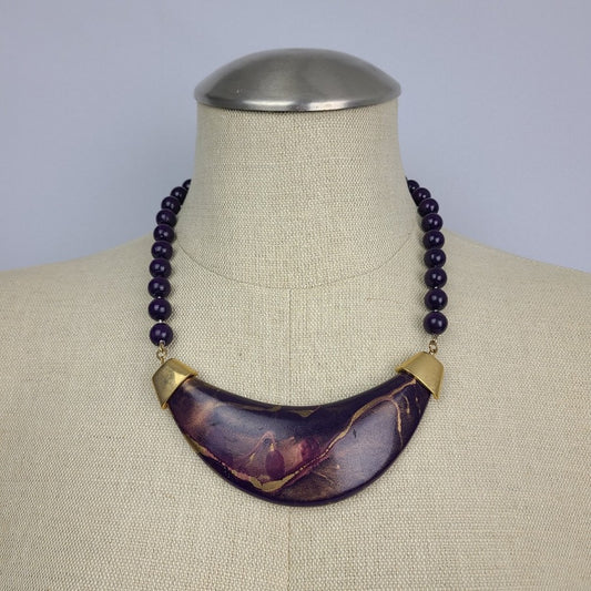 Vintage Metallic Black Blue & Silver Layered Necklace Statement Beaded