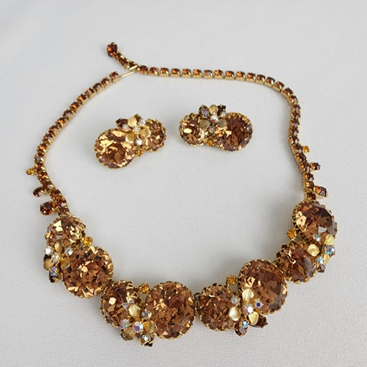 Hattie Carnegie Smoky Topaz Large Cabochon Necklace Earring Set