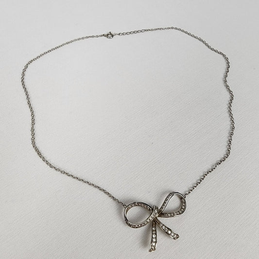 925 Sterling Silver Crystal Bow Delicate Necklace
