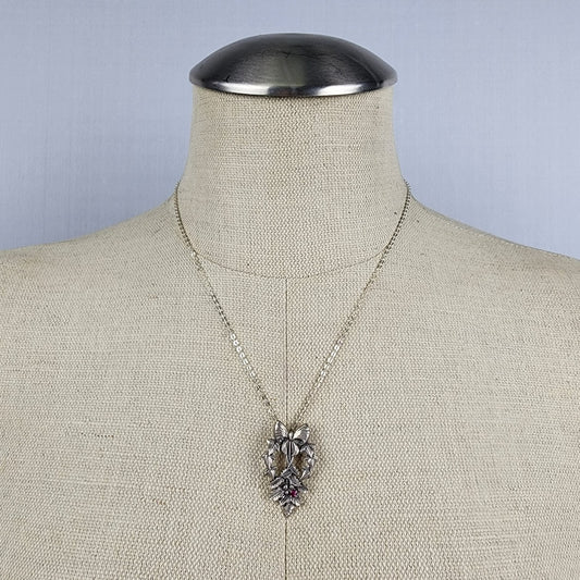 Vintage Franklin Mint 1982 925 Sterling Silver Love Mistle Toe Pendant Necklace