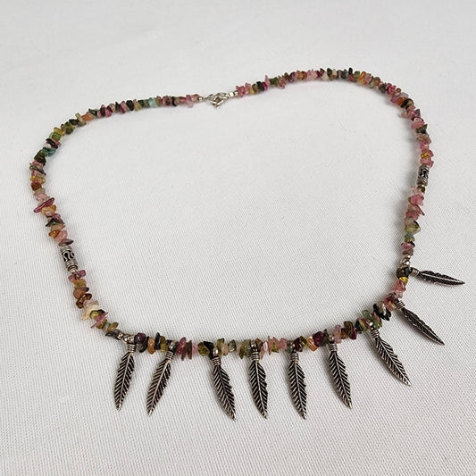 Natural Chip Stone 925 Sterling Silver Beaded Necklace