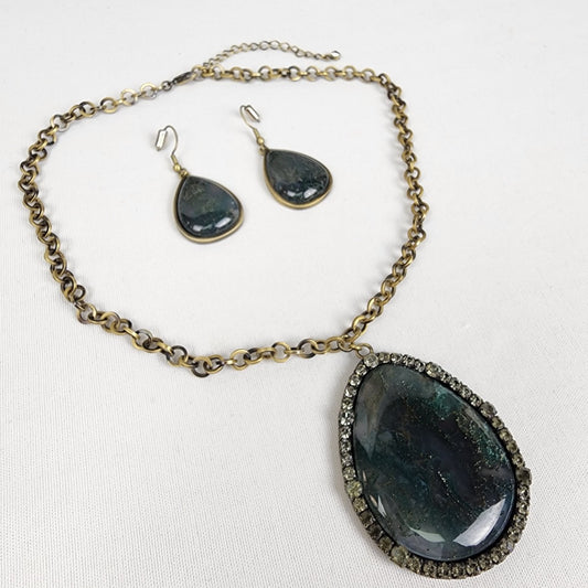 Butler Gold & Black Teardrop Stone Necklace & Hook Earrings Set