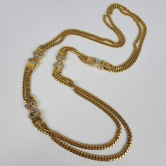 Gold Tone Chain Heart Rhinestone Long Necklace