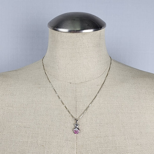 925 Sterling Silver Pink Teddy Bear Box Chain Necklace