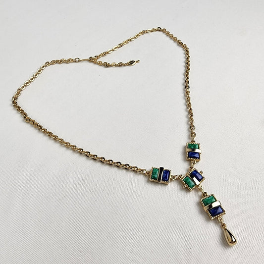 Vintage Sarah Coventry Blue & Green Stone Y Necklace