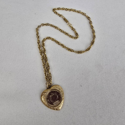 Vintage Gold Tone Toggle Glass Heart Pendant Necklace