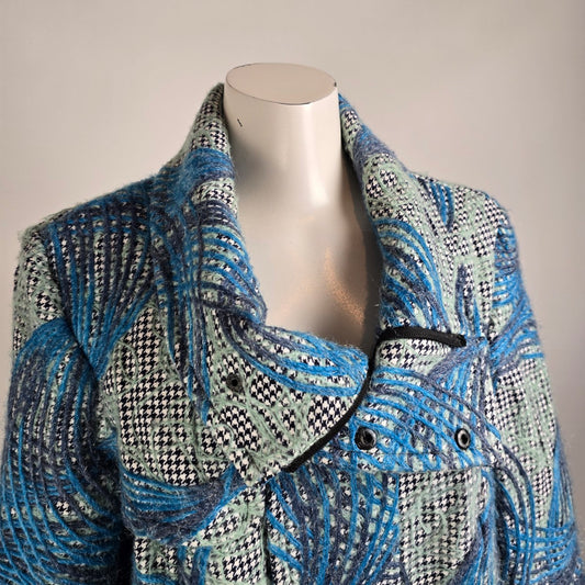 Samuel Dong Blue Abrstact Print Mohair Jacket Size L