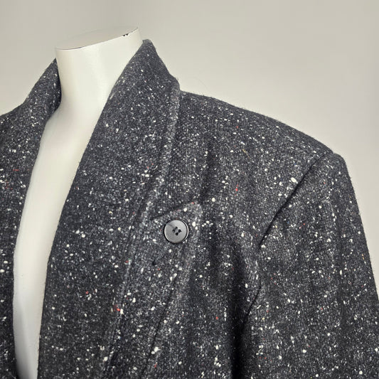 Vintage 80s Jonathan Christopher Black Speckled Wool Coat Size M