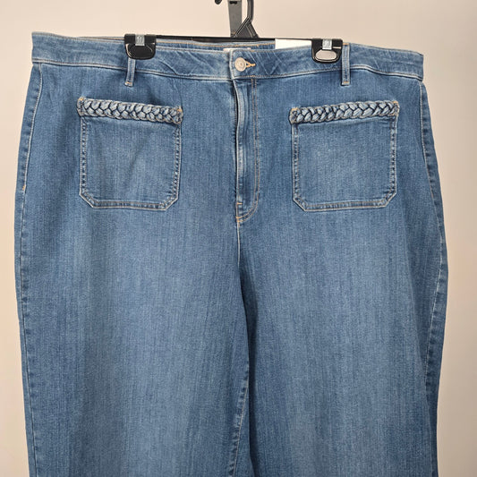 DC Jamb Large Wide Leg Curvy Medium Wash Braided Detail Jeans Size 26