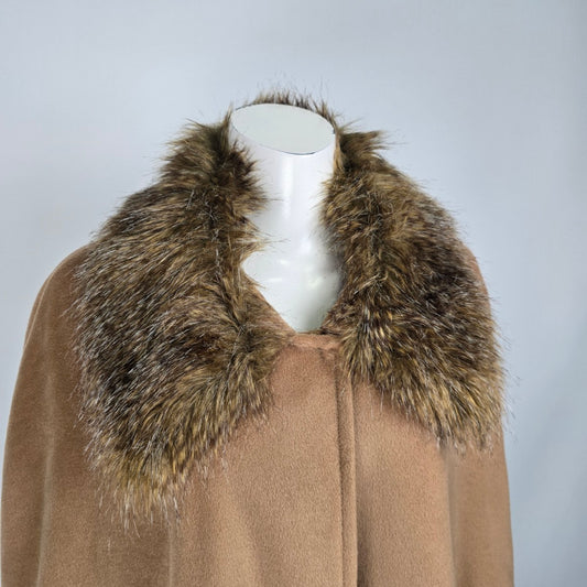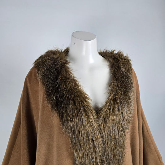 Adrienne Landau Brown Cape Faux Fur Trimmed Jacket Size XL