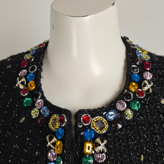Vintage Berek Black Tweed Jewel Embellished Blazer Jacket Size XL