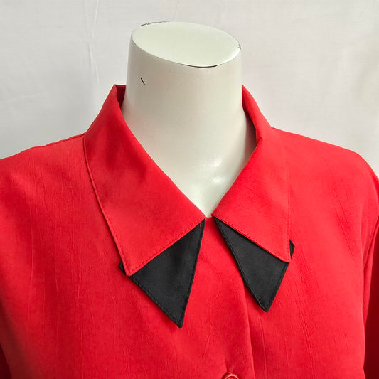 Vintage Match Makers Red Collared Button Up Blouse Size XL