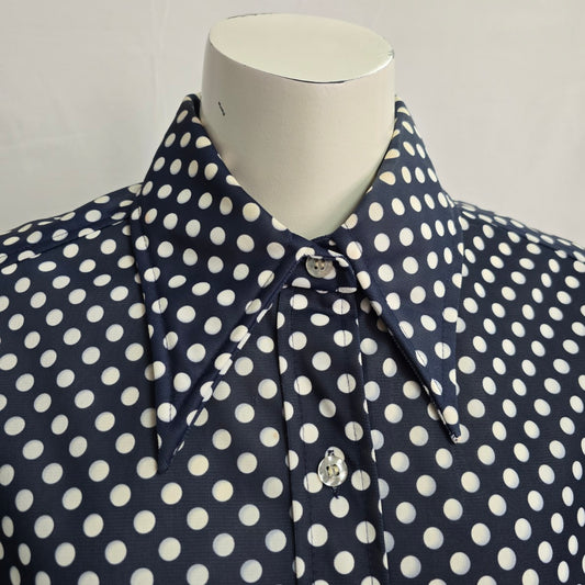 Vintage Elite Navy Blue Polka Dot Button Up Collared Blouse Size XL