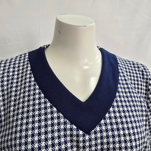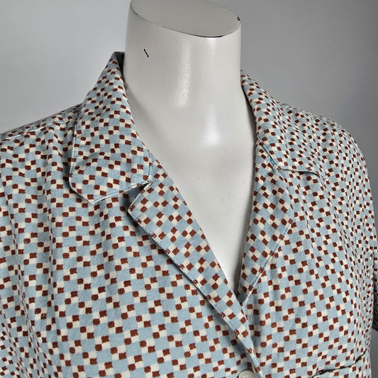 Vintage Blue Check Short Sleeve Top Size L/XL