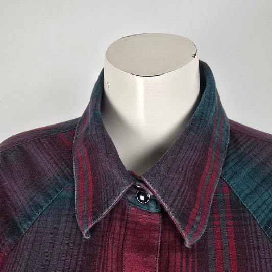 Powder River Outfitters Red Cotton Plaid Pearl Snap Western Top Size XL