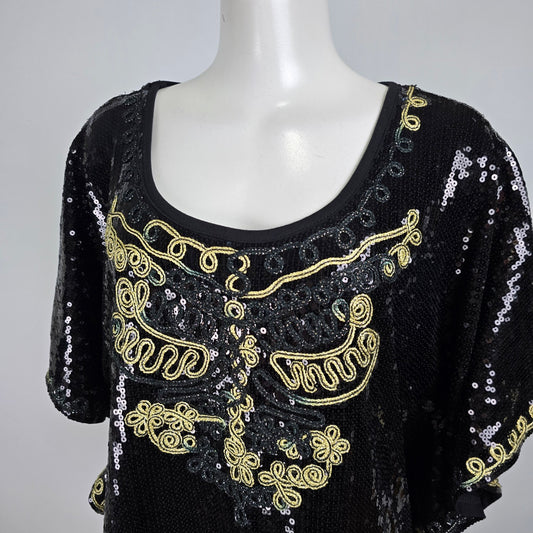 Vintage Once 1 Again Black & Gold Sequined Poncho Top Size 1X