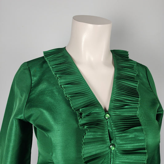 Oscar De La Renta Green Ruffle Button Front Blouse Size 14