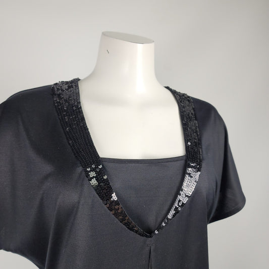 Hugo Boss Black Silk Jersey Sequined Short Sleeve Top Size XL