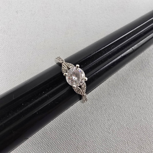 S925 Silver Tone Crystal Statement Ring Size 8