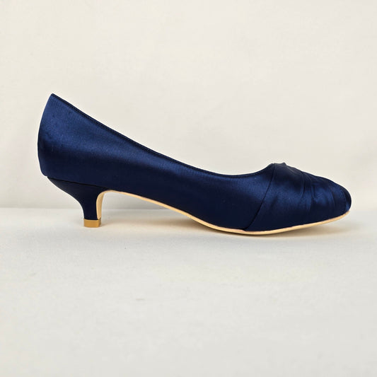 ELEGANTPARK Blue Low Heel Satin Rhinestone Shoes Size 9