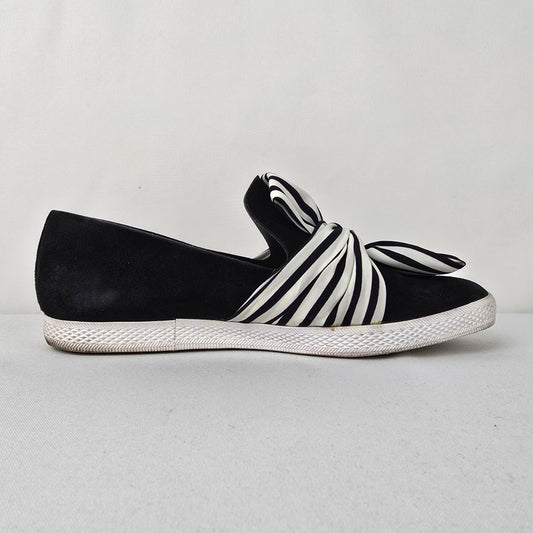 ALL BLACK Slip on Sneakers Striped Bow Tie Sneakers Size 9.5