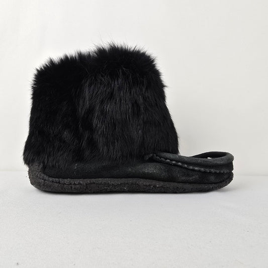 Laurentian Chief Black Suede and Rabbit Fur Mukluks Size 9