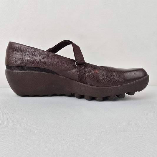 Tsubo Brown Leather Wedge Mary Jane Shoes Size 8