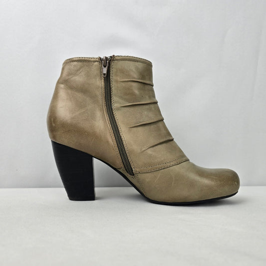 Miz Mooz Taupe Leather Denise Button Detail Heeled Ankle Boot Size 10