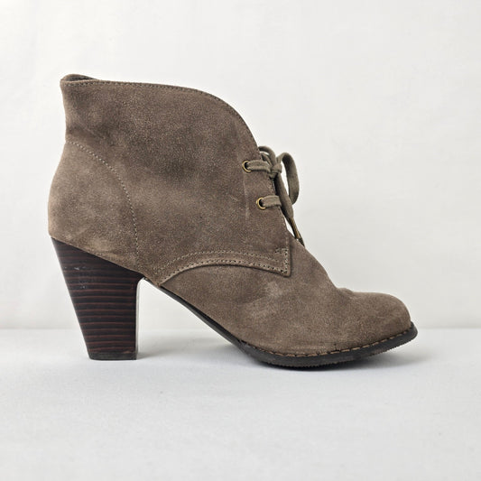 Denver Hays Taupe Suede Lace Up Heeled Boots Size 10