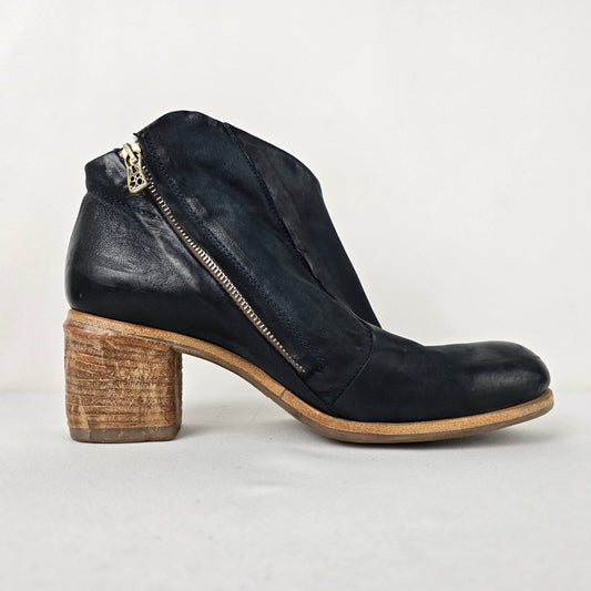 AS98 Black Leather Block Heel Ankle Boots Size 10.5